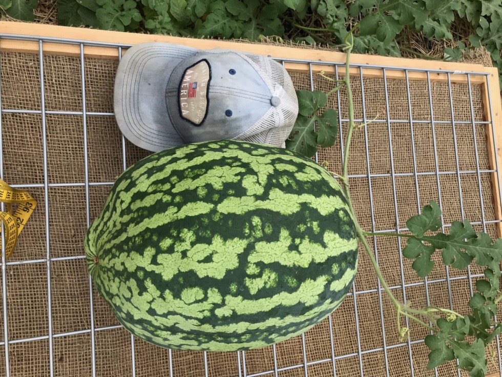 The melon, 30 DAP, should be about 4X by now. Growing, just not fast. Maybe slow and steady wins the race in the end. I will be disappointed if I don't make 100 lbs.