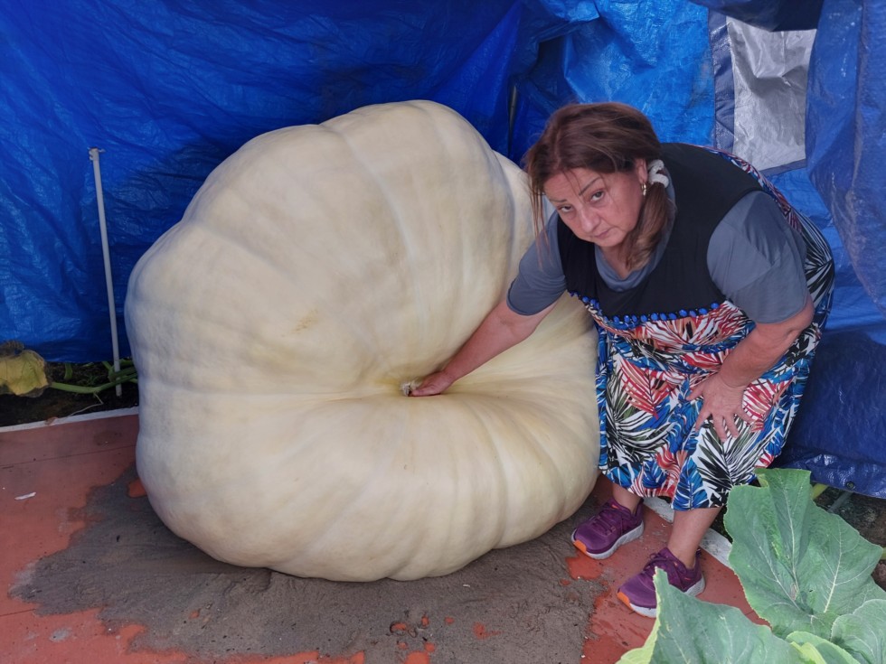 Big rain storm last week and it split Saturday. Wife has her hand in the split and kept saying just fix it. Right!!! it was growing nicely and when the storm hit it picked up to 63 lbs a day and couldn't handle it. We taped it when we removed the plant and was taping 370 ott