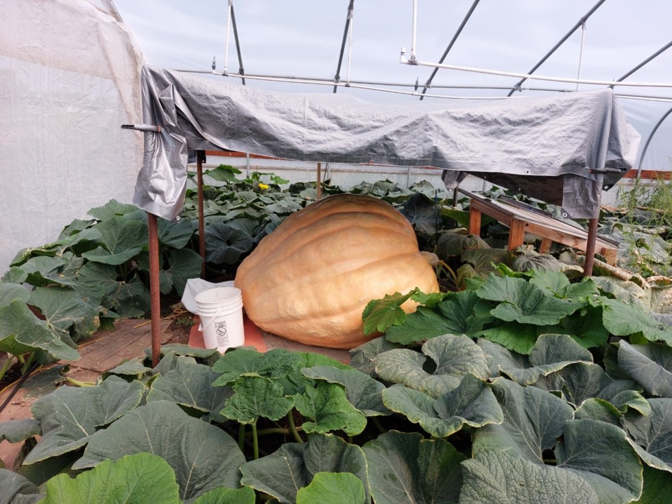 This is our other pumpkin, needs 10 inches to tie our PB. Still growing, so hoping it gets there.