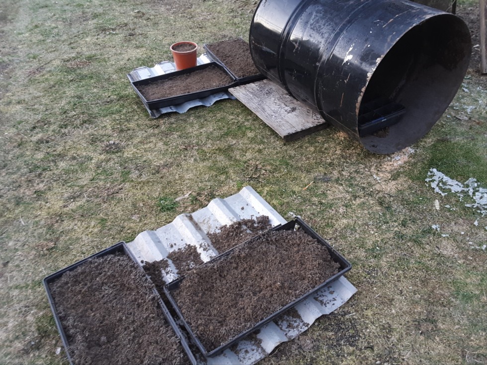 I helped my home made potting mix to freeze by laying it out in the trays last night. This should kill some of the bugs before I bring it in the house. Temp last night fell to 16 degrees. I know thats not super cold. But thats about as cold as it can get here in western Washington at this time of year.