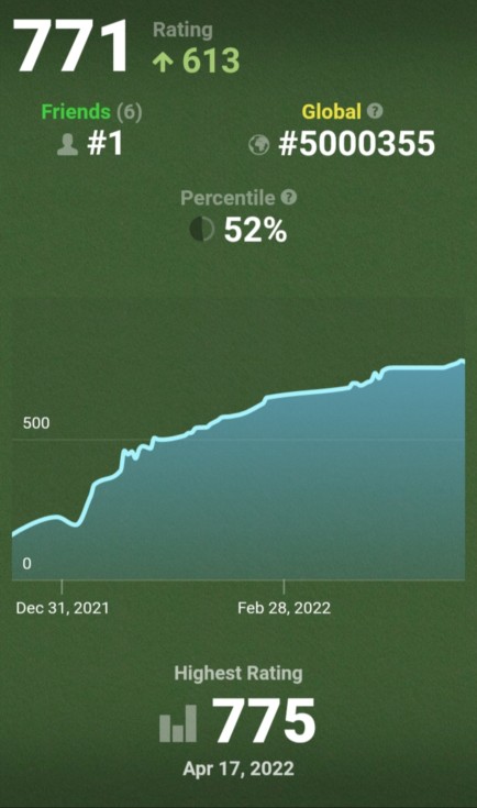 I am finally above average in chess. Only 5 million people better than me. At least with pumpkins... there are only 5,000 people better than me :)