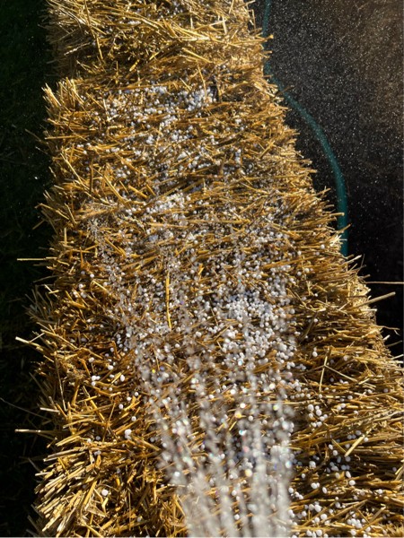 You condition the bales with a nitrogen rich regimen in between soaking them and in 12 days you are ready to plant. We shall see. If it makes more room in the patch for pumpkins and tomatoes it�s a win.