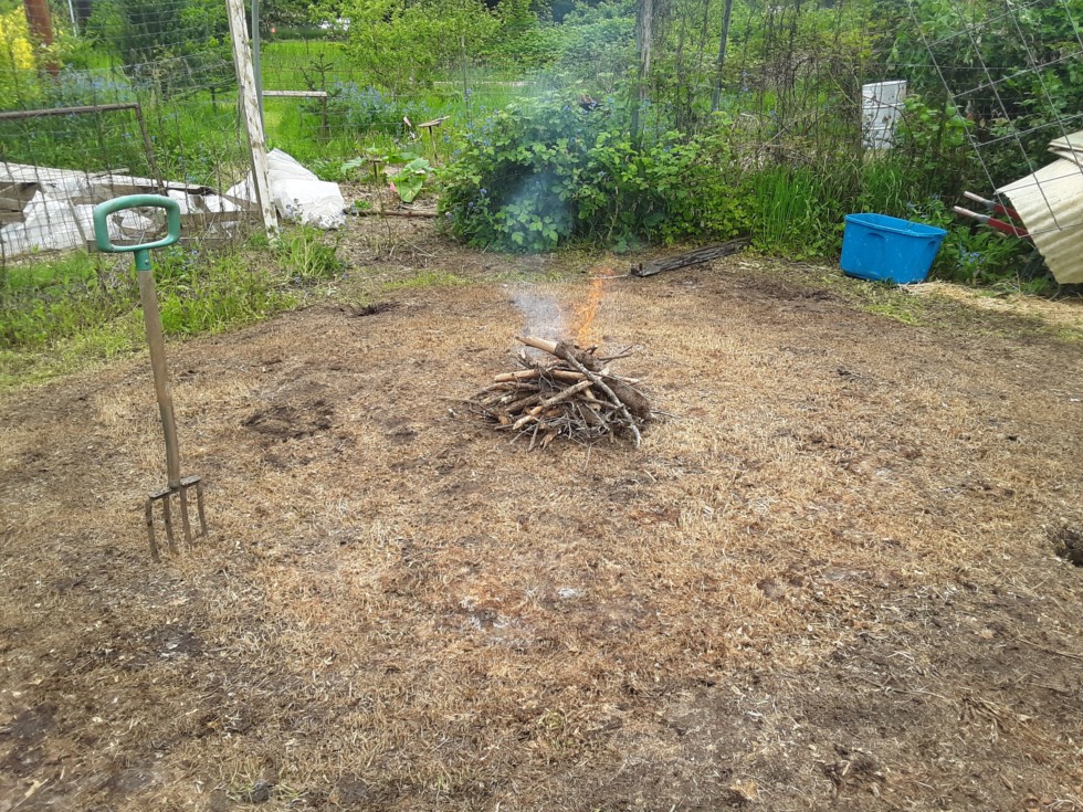 Me being stupid. Trying to bbq a gross gob of dying bugs that fell into a planting hole while this spot was getting solarized. The good bugs are out of their misery, the bad ones are out of my misery. Their pals will likely avenge them... Bad carma now.