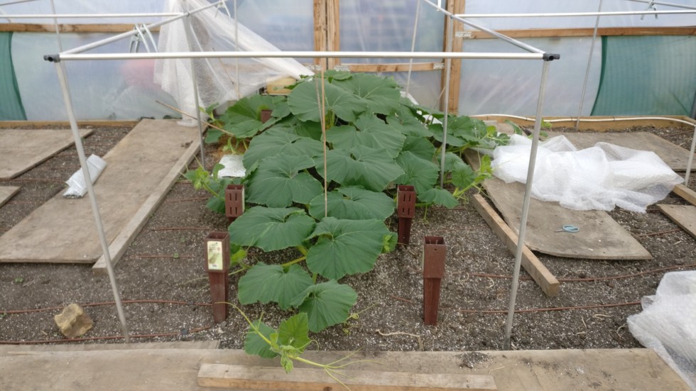 Here we are 1 week later and despite daily highs of 41C and night temps as low as 6C the plant isn't looking too bad. No additional water during this time also but the soil still averages 20% moisture. There is no sign of scorching on the leaves which is surprisingly good news but growth hasn't been as vigorous as it could have been. It looks ok from a distance but close up it's a bit of a mess with a lot of overdue training & pruning. There's a female at the tip of the main. So all in all it's fine, nothing a session with the clippers can't sort out along with a shower & some food.