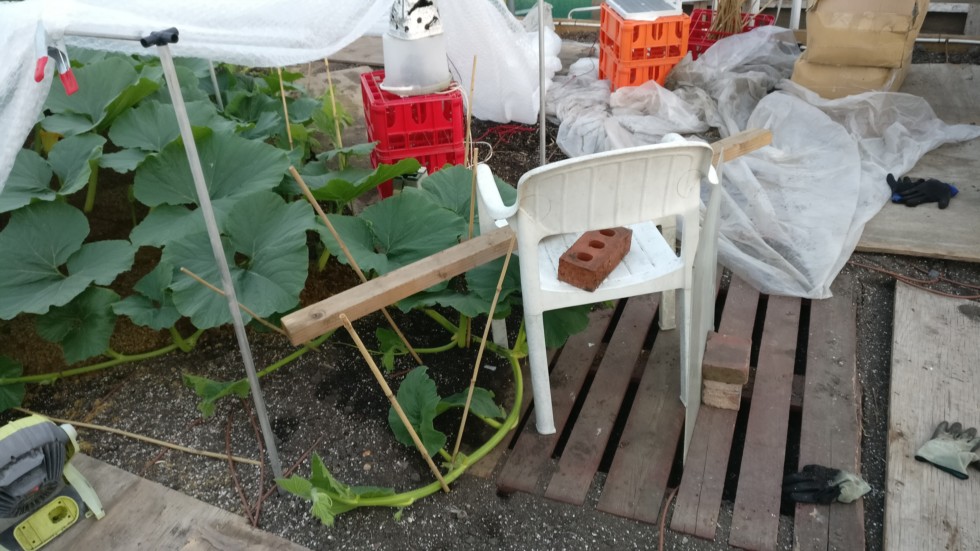 Trying to wangle it so the pumpkin will grow directly on a pallet. It will be so much easier to transport it's already on a pallet.
