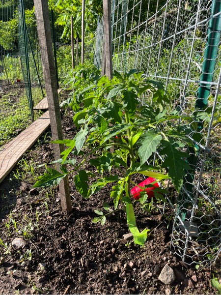 The A Row of giant tomatoes continue to be the best looking. I am seeing some blossoms starting to form. The plant in front is from the legendary German gardener, Professor Fup. It is one of the 6.11 Fup�s. I am expecting something big from this badass Domingo.