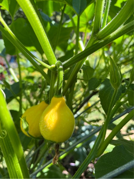 Some decorative gourds hanging on the trellis give it a good look.