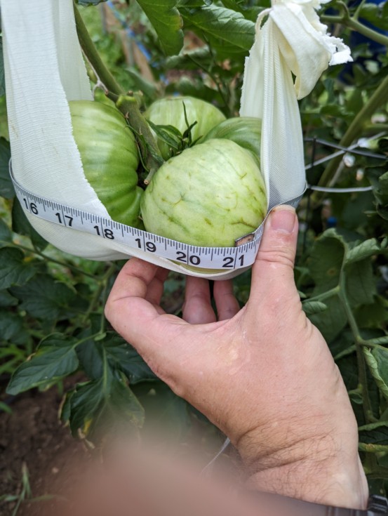 The big megabloom tomato is growing great. It's the biggest tomato I've grown so far. 3/4" every 2 days. This will give me a good shot at the Colorado state record if I can keep it going for another week and a half.