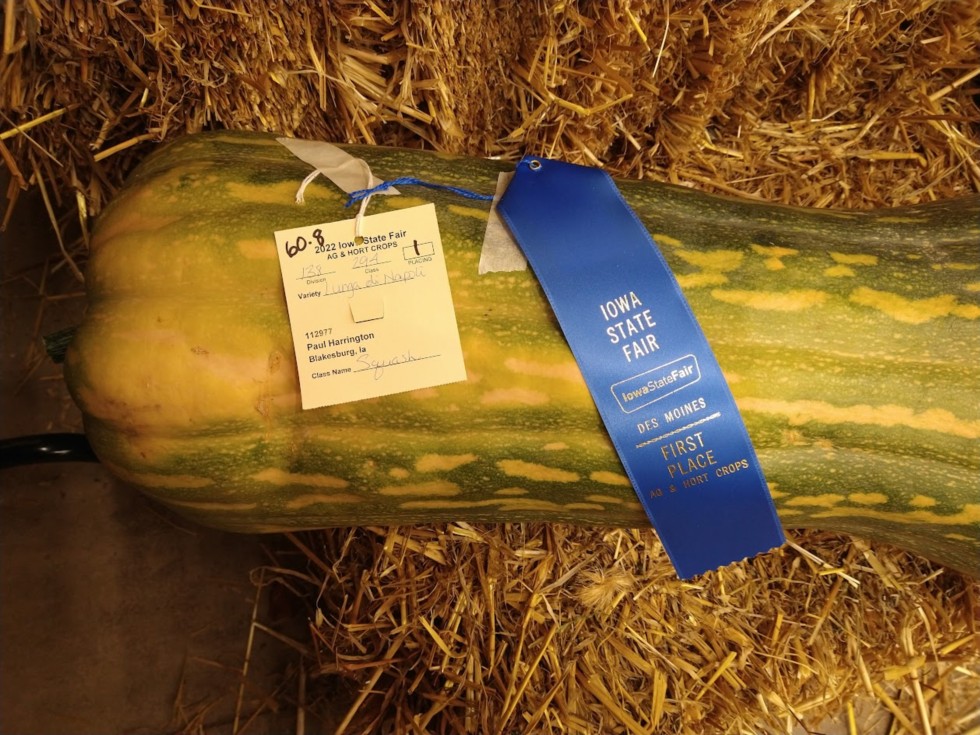 Took one of the smaller of the triplets from the 171 Hebb as the largest one had the fastest growth rate yet. Set a new fair record in the squash category at 60.8 lbs.