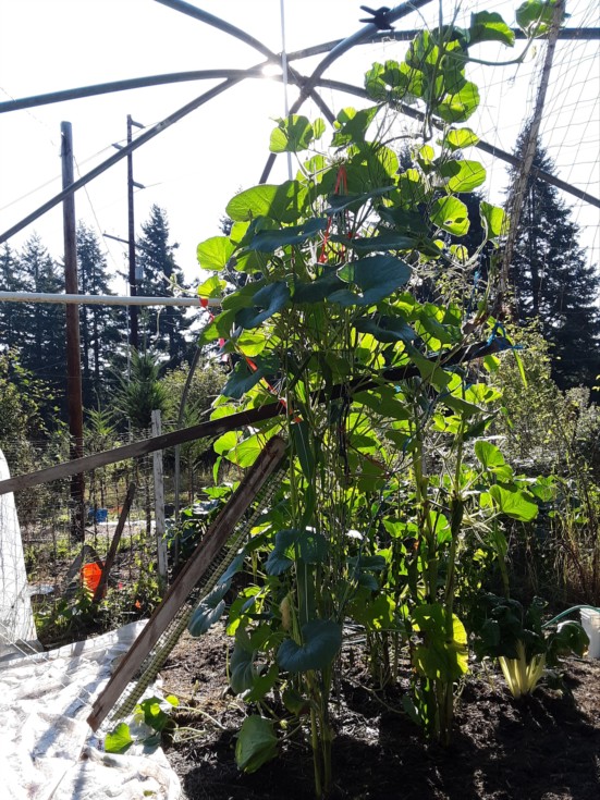 Did my best but I'm not optomistic. I think having this long gourd grow out at an angle will cost me a lot of "gravity stretch" inches. Oh well. Didnt fall off the ladder last night, so life goes on...