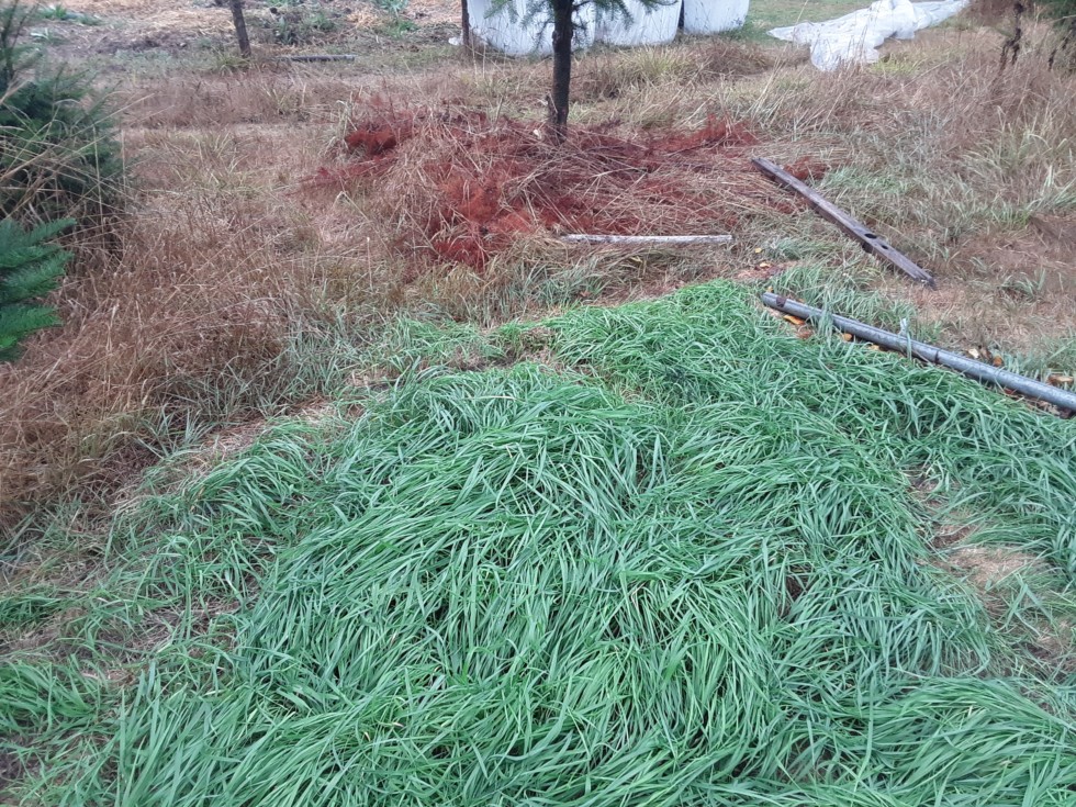 The grass is much healthier where it was growing under the plastic. My intention was to kill the grass, not get it to grow better. But getting things to grow better... hmm... is interesting.