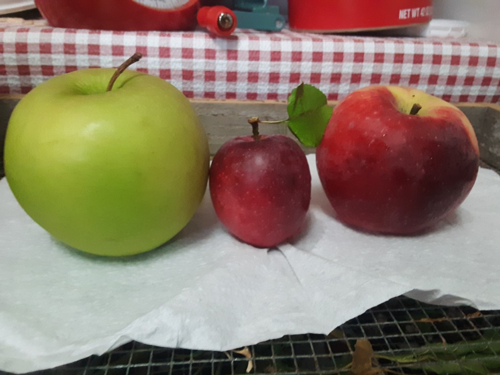The red ones are a variety called "Liberty". I was initially disappointed by this variety but its actually a really good apple. It throws mostly medium apples but a few child-sized apples too which are good quality despite their small size. A good fruit tree is a good investment. Where else can you invest $20 or $30 and get a $60 return every year. I know, I know. Its not exactly a winning Powerball ticket!