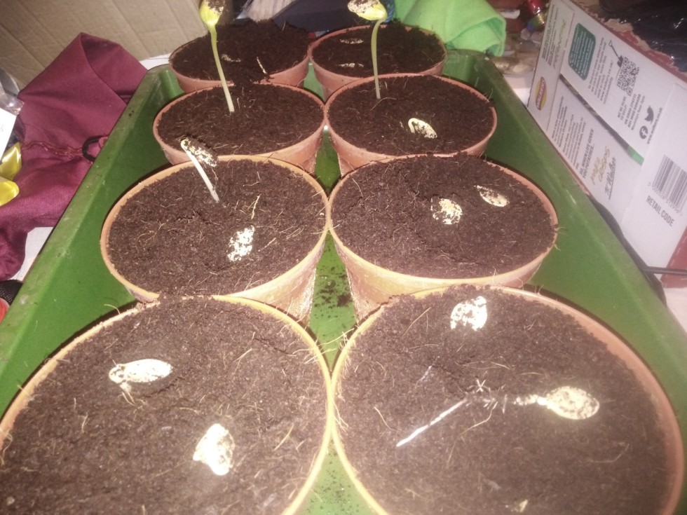 After a tough year with splits I only seeded my best two marrows and the two field pumpkins, First germination teat wasn't as I'd hoped. 200.6 M - 0/4 235.9 M - 3/3 268 F.P - 1/4 218.3 F.P - 2/4 no idea why the 200.6 marrows failed as the seeds appear strong, quite disappointing. The 235.9 marrow seeds germinated fine. I was suspicious about the field pumpkin seeds as they appear rather thin now that they have dried out. I'm going to try another batch.