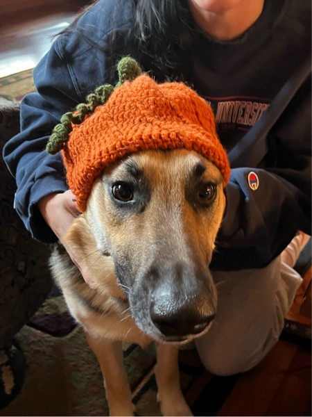 It�s time to put last years pumpkin season behind us and get ready for another growing season. Maggie is ready for the challenge but not ready to give up her pumpkin hat.