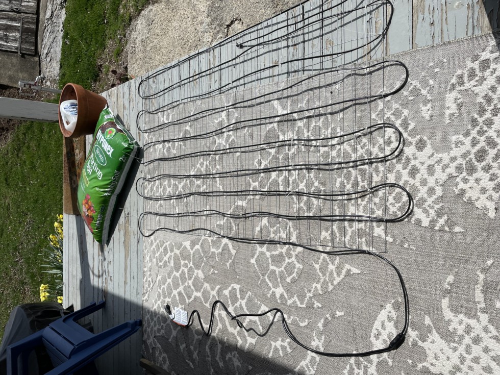 These are deicing roof cables. The difference between these and most is they have no built in thermostat. I use a heat mat controller with the sensor buried 8" deep to control all four locations. Since all of my hoops are the same size and the patch get equal sun I can do this. Otherwise I would have to have a separate controller for each location. This cables are strapped to 2"x 4" fence wire which is 3' x 5'. There is 60' of cable. These cable are about $45 each. The controller was $30.
