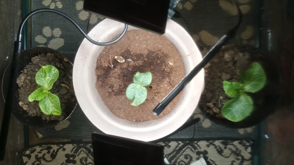 Still chugging along! The middle one, being in a more airy potting soil, is a bit of a darker green. It's still two days behind though so it probably won't make the cut.