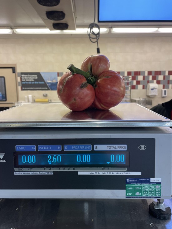 Grown from the Tobeck 6.38, this is my first ever "Giant" tomato. At a whopping 2.6 pounds it's not impressive. This plant was one of 3 6.38's started on March 1 and in the ground May 1. This tomato was from the first mega seen on a plant.