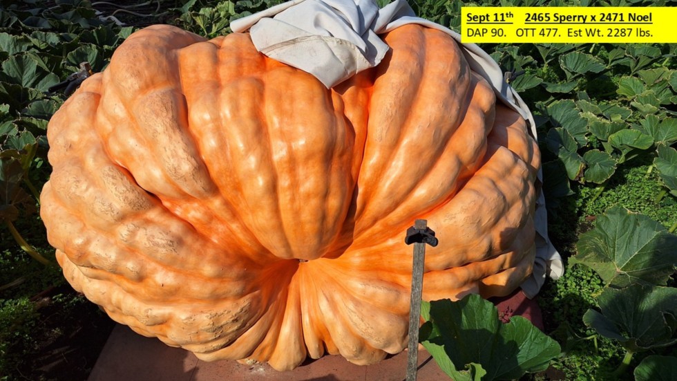Our 2465 Sperry pumpkin has developed a very knobby surface, in her old age. She's 90. And a nice orange color. Finally the skin is starting to cantaloupe.