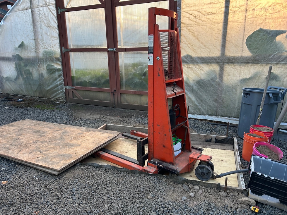 I've been working on getting my 2000 pound Presto Lift ready to go the past couple days.  After replacing the battery it works great! I dug a flat and level six inch deep hole and lined it with a plywood deck for the lift to sit on as it helps my liftgate hoist gigantic pumpkins onto my flatbed truck.  I love a good project, so the fun just keeps rolling!