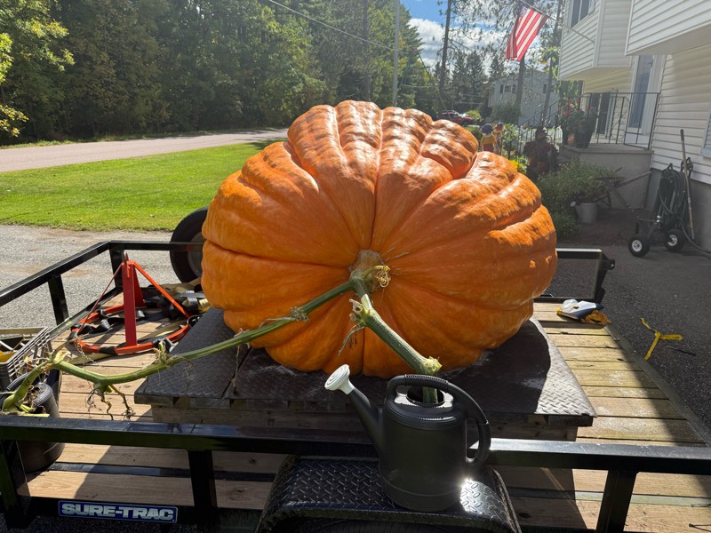 We harvested Maggie (1552 Young x 1503 Young) she is excited to meet other pumpkins at the Vermont State weigh off. Good luck to all growers who are weighing this weekend!