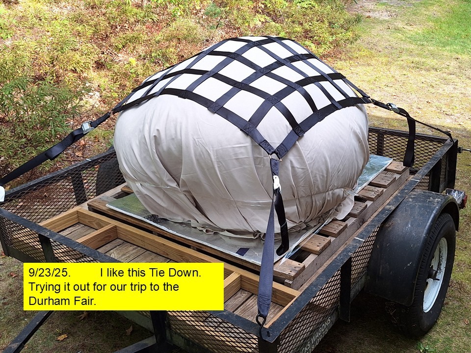 We are testing our new Pumpkin Tie Downs for our trip to todays weigh-off at the Durham Fair.  Got them on Amazon.  All the growers I talked to seem to like their set.