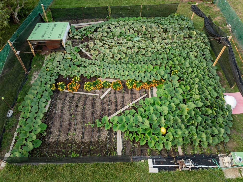 I had no disease pressure from the soil this year which was an improvement over previous years.  If you can rotate fields, or take a year off from growing, I highly recommend soil solarization.  Unfortunately to do this right you need to have the growing area covered in clear plastic during the middle of summer.  I also rotated a soil drench of Terragrow and RootShield Plus through the drip irrigation.   The oldest leaves of the plant are starting to show their age at this point. I am going to let a few porch pumpkins grow for a couple more weeks after I harvest the pumpkin at the end of next week.