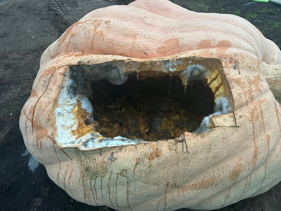 By the time I got back home from Hard Rock Hope was nasty inside.  Tracey fished about 100 seeds out of the mess while I was in California & I got some more on Monday when I unceremoniously chopped up Hope.  It is crazy how one day we are treating a pumpkin & its plant like royalty, and the next day it is like it never mattered.  It is a good thing we enjoy the ride that growing these things is!