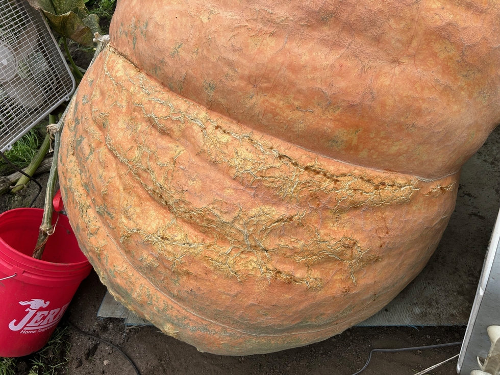 This pumpkin has more skin cracks than I have ever seen.  Every pumpkin I have ever grown with skin cracks like these has gone super heavy.