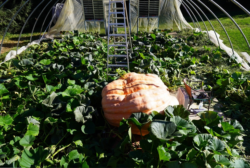 Before going through the plant (which never feels right) to set-up the metal lifting tripod (Thanks Alex) this provides one last look at the plant that grew the pumpkin.