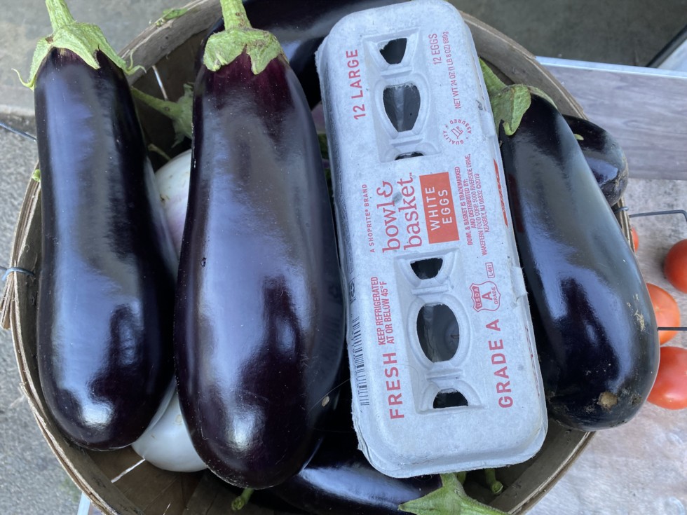 I went through the eggplant row tonight. I found these big eggplant. This is from the variety classic. I highly recommend classic to anyone looking to grow big plants. With lots of eggplant. It tends to resist disease a bit better too.