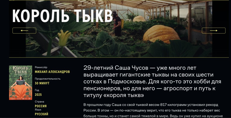 An art-house film about Alexander Chusov, who grew a Russian pumpkin record. (Kisamore and Wolf)