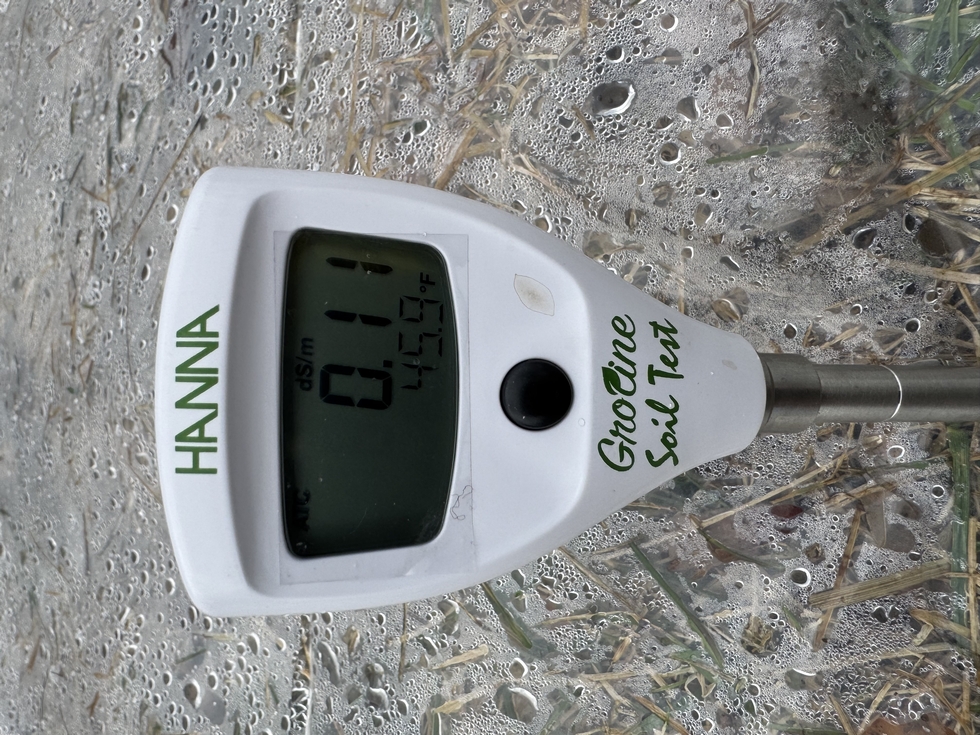 I also took an EC reading while I was poking around under there. It's sitting at a super low 0.11. I'm taking this as a really great starting point. It tells me the native dirt is basically a clean slate with no leftover salt or chemical buildup from previous use, which should make a perfect, neutral base for my amendments.