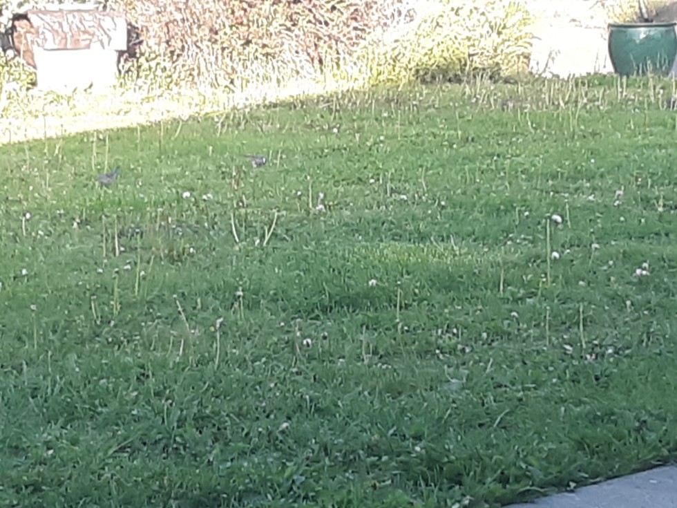 Impossible to see them but there are 14 finches having a dandelion seed dinner. Some next door neighbors spent just spent money killing all their dandelions. Which is fine if they want a golf course lawn they can have one. But if we all had golf course lawns, the birds would have nothing to eat.