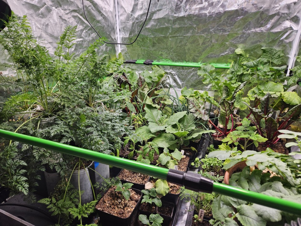 4x4 indoor tent: giant carrots, onions, beets, cabbage, tomatoes, and some other giants...that one can hope will be giants. I'm not impressed with the vivosun inline fan. Something is off with either the sensor or the fan isn't as powerful as ac infinity. The self watering trays2grow have been a life saver.