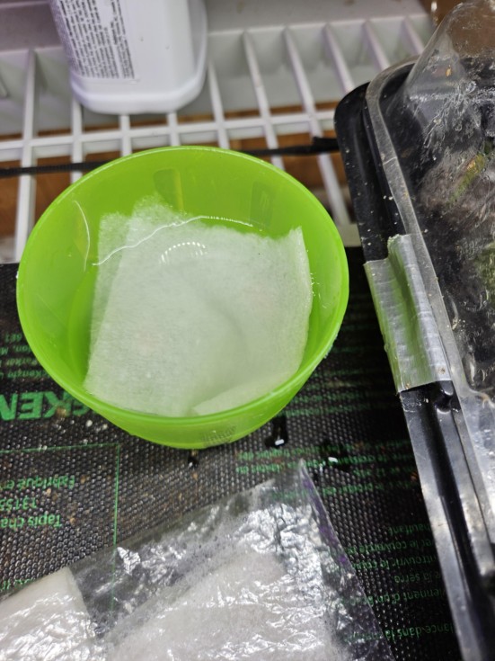 I may have forgotten to plant the BGs when I woke up this morning.... they had almost 20 hours of soack instead of the 8 they were supposed to. Hopefully its okay. Anyway, theyre into paper towels now, and watermelons soaking under a paper towel (to weight it down) 2x 161.5 mackenzie, they'll go into paper towel this evening