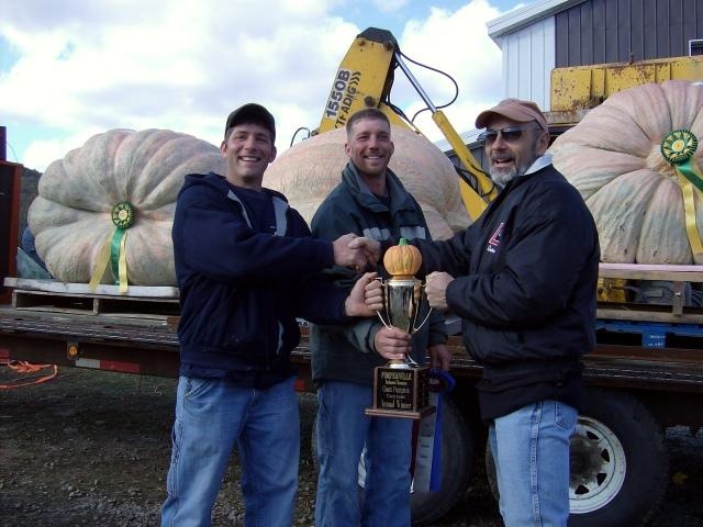 Quinn turns over the traveling trophy to the new site champs, Dan and Jason Mckie.