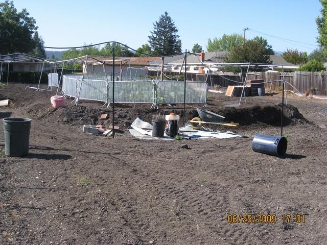 Farmer Chuck visits Vineman. His plants are growing in a 3 foot high bed of compost.