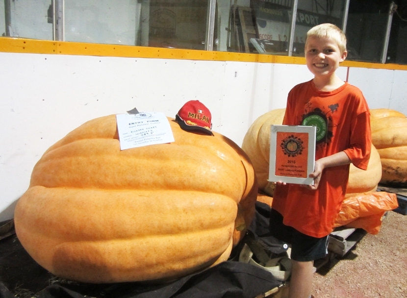 This is my 489.5 lbs. pumpkin I grew. It won the Howard Dill Best Looking Award at the Roland Pumpkin Fair. I named this pumpkin Garry the Giant.