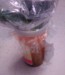 Lucky I have fingers left, lol. Then, simply shoving the Saran Wrap up through and using the 'neck' of the