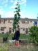 20 feet of pole. Minus 2 feet for the attachment points. Minus 11 inches in the bucket. If the sunflower gets to the top of the pole, it will be at 17 feet.