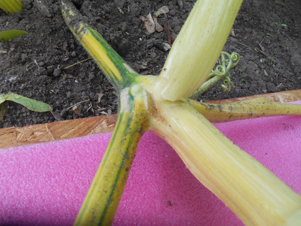the 1623 Wallace I planted it in the most shady spot in hopes to slow it down and I have not yet fertilized it.. The main has split and two secondarys and now 2 spots on the stem... ?