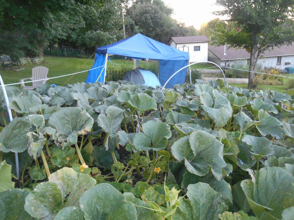 Crap no edit button, I post the same pic again.. You can see the the new growth.. And if you where woudering what the strings and hoops are for . its to help me pull the frost tarps over the plant without damaging the plant to much.
