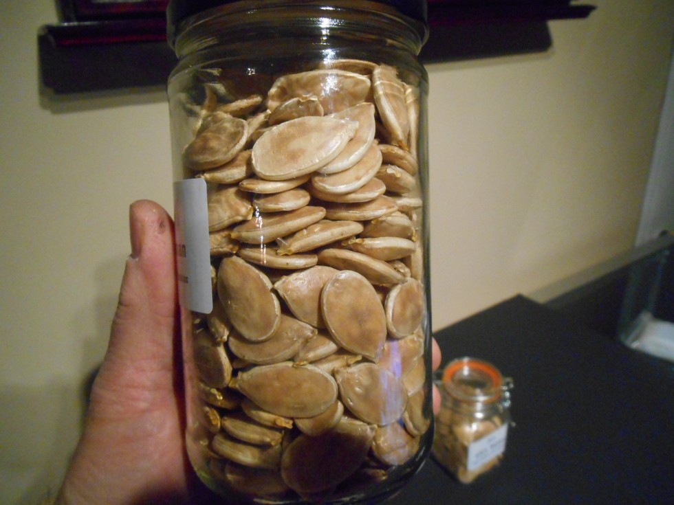 Well seeds are dry...Look at them seeds makes my thumb look small..People name there pumpkins, I`m going to name my pumpkin seeds.. I`ll call them Big Toe.. with out the fungus. Anyone want to grow some Big Toes!! lol