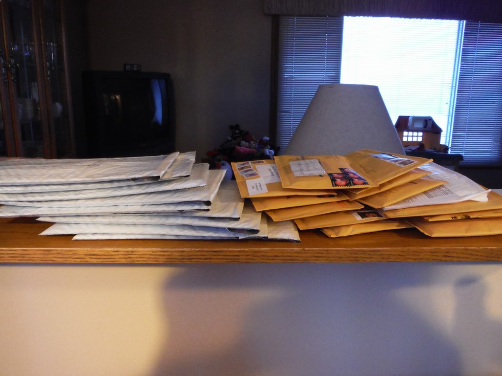 Just spent half the day packing these bubbles the white ones are Worldclassgardening.com for the month I was gone.The yellow ones bubbles people have sent.As I have said before the 1947s and 1317s are gone for the season.I did send out a couple but the rest were the 1768 and smaller.If you want to grow the 1947 and need seed there is still some spots left in the Bubba Challenge,you get 1- 1947seed.