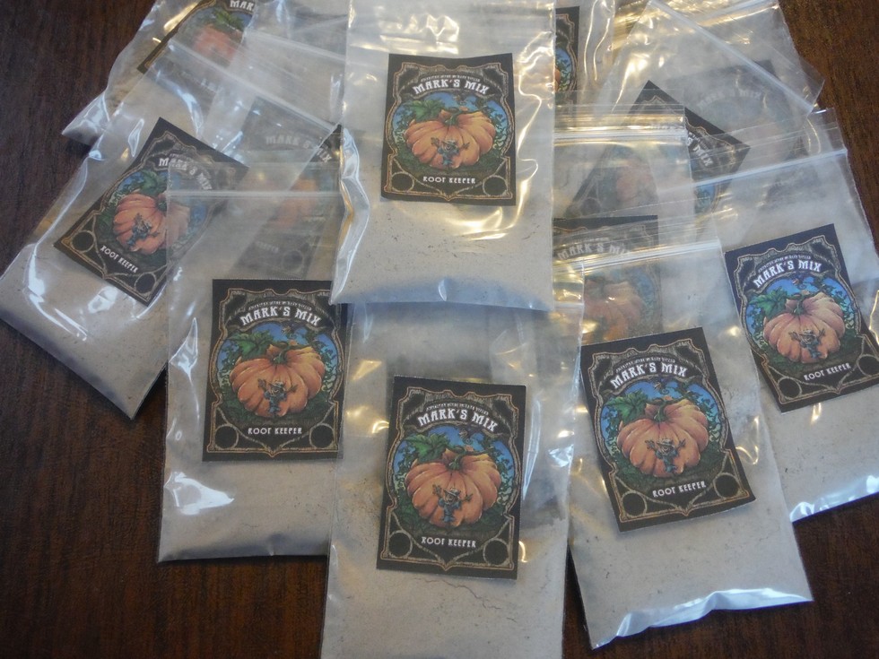 The Root Keeper is packaged! Will ship out Monday morning with seed raffle.Root Keeper Memberships,Bronze & Gold will get this mini pack makes 3 gallons. to inoculate seedlings & do your transplanting.A bigger container will ship in early May with other products for the 2015 season.Gold Members will get a double supply.Enough to transplant at least 4 kins This is a Bacillus Trichoderma & Mycorhizae custom mix.