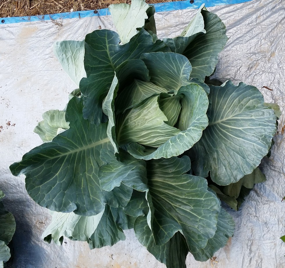 All 3 cabbage plants are making heads. This is the largest and it started forming first hard to tell but it is about a foot across and somewhat flat. The other 2 look like they will be more round. All 3 plants have started leaning to the east presumably since they are in the afternoon shade to keep them cooler. Today I spun the tubs they are in to see if the head will lean back and get more centered.