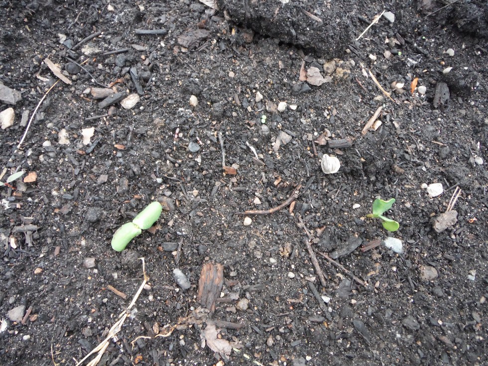 Planted 100 foot row of Mammoth sunflowers Marvin Mitchel gave me.There up in 5 days
