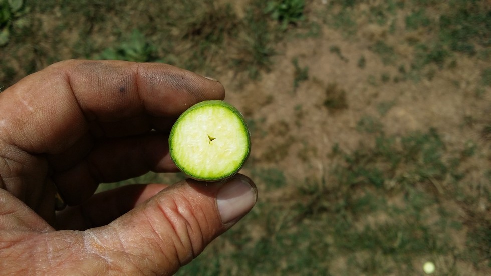 Found a 2-3 inch cull hiding under the leaves. As usual I cut it open. Hollow heart starts early. Still no sure answer as to what causes it. Got a dilemma in the squash project. Going to end up with 3 green 615's competing for the same area. I can turn them a bit and grow them all on much smaller areas. Or, cull all the way down to 1 or something in between. Not many 615's left in the world. Opinions welcome! Click on the little envelope and send me an e-mail with your thoughts. Averages seem to work out. No greenies from 8 plants from my 1045. What a disappointment. I really wanted to self that one. Total of 11 other F2 plants left competing for 4 spots. All have at least one squash producer going. Narrowed the field down on pumpkin. Making the patch 1730 Werner, 1916 Barron, 2008 Neptune.