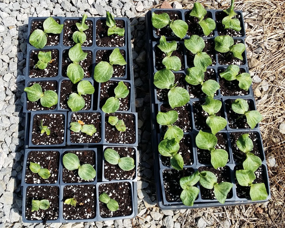 All 36 1045's sprouted. Now to get them planted. Field is saturated but they will go in anyhow. Plan on trying to set the first one on each one that is green. The balance will be pulled. Will be pushed with nitrogen especially early. Finally got sets on what was suppose to be my early plants. No contenders for the early weigh-offs here. If all goes well there will be 3 squash and 2 pumpkins to haul somewhere.