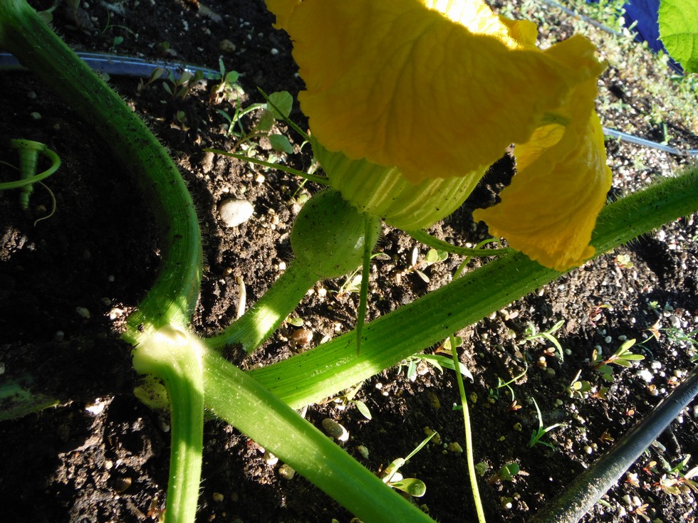 1362 PUGHHHHH!! Squash selfed at 7:45 am Cool day will hit 80 today at best low 53 Fruit set on MV at aprox 12 feet out it was the 2nd fruit I snipped one at 8 feet.Plant size 16 feet wide at stump with side runners & about 14-15 feet long,perfect Christmas tree.